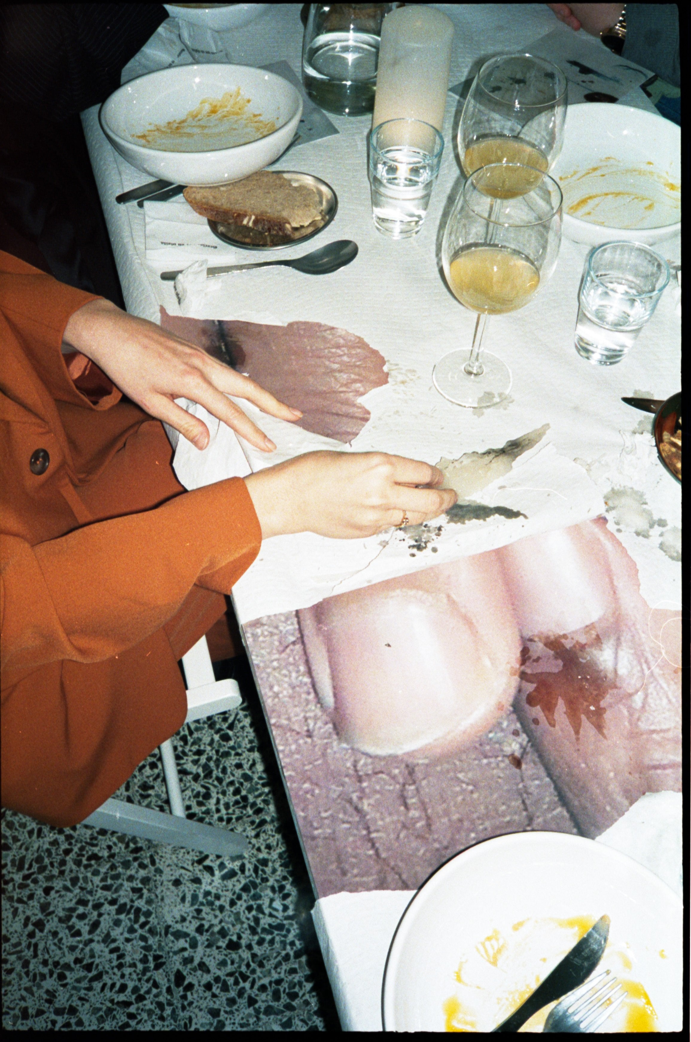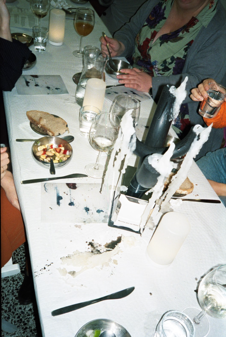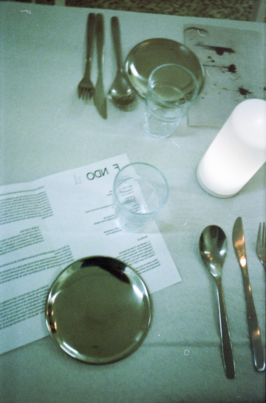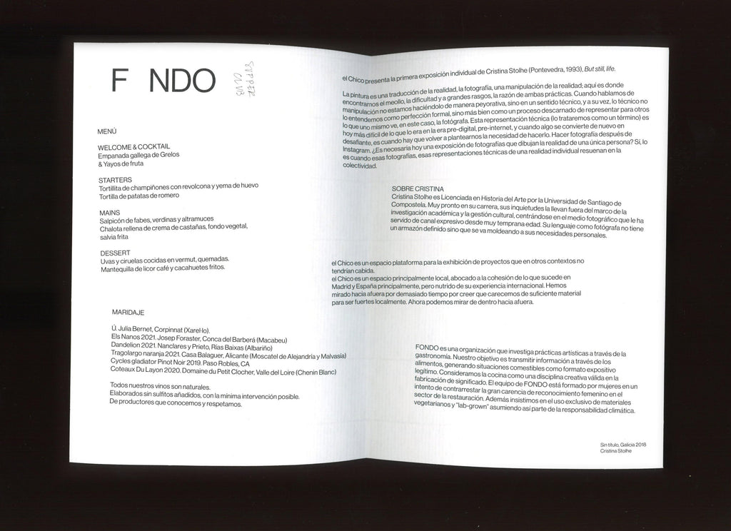 The gallery space transformed around the table to generate dynamics usually found in bars, typical restaurants and Galician households. Cristina’s point of view on ordinary situations inspired us to look at typical bar attire with new eyes. Metallic napkin holders became candle holders, paper tablecloths started to reveal details of life captured by the photographer once life started to happen on top.